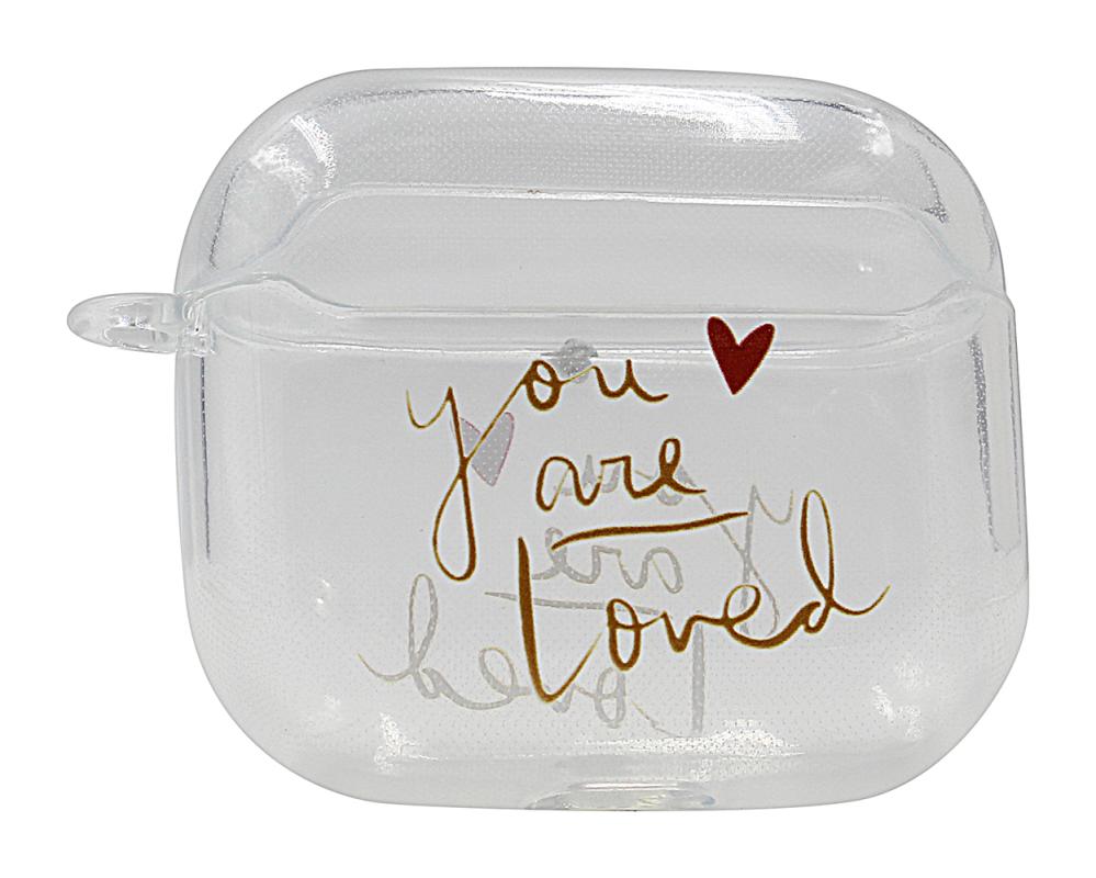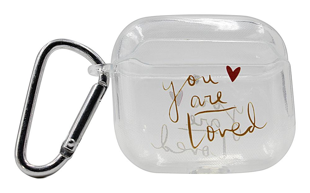 Gjennomsiktig design-etui til Apple AirPods (3rd Generation). Beskytt dine AirPods med et hardt etui av klar plast med tekst eller design. Etuiet leveres i to deler: En til AirPods-holderen og en til lokket. Plasser hele det originale AirPods-etuiet i Design Etui, og putt den andre delen over lokket. Dermed beskytter du dine AirPods ekstra godt mot støt og riper. Det er jo ikke uvanlig at AirPodsene faller ut av det originale etuiet når man mister dem, og man kan lett få riper i etuiet. Med et ekstra etui rundt AirPodsene dine får du rett og slett ekstra god beskyttelse! I tillegg blir det enklere å kjenne igjen AirPodsene dine når de har et personlig preg, og med vårt design-etui ser du jo fortsatt det vanlige etuiet ditt gjennom plasten. Etuiet har også et hull i bunnen slik at du kan lade dine Apple AirPods. Dermed trenger du ikke ta AirPodsene dine ut av etuiet når du skal lade dem.
