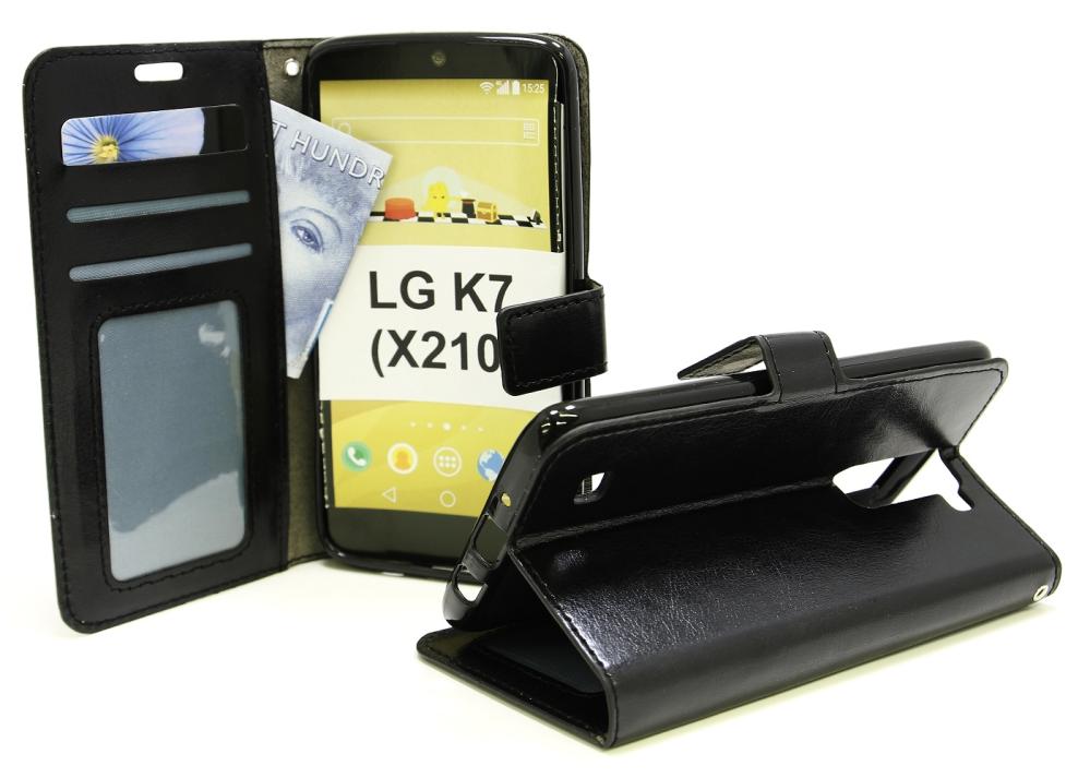 Crazy Horse Standcase Wallet/Lommebok-etui/mobil lommebok/mobilwallet/mobiletui for LG K7 (X210)