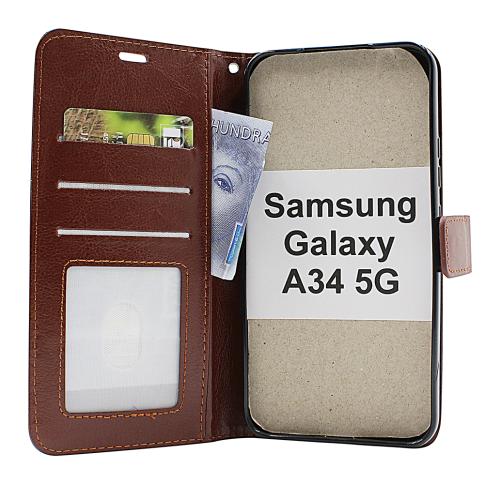 Crazy Horse Standcase Wallet/Lommebok-etui/mobil lommebok/mobilwallet/mobiletui for Samsung Galaxy A34 5G (SM-A346B/DS)