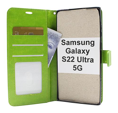 Crazy Horse Standcase Wallet/Lommebok-etui/mobil lommebok/mobilwallet/mobiletui for Samsung Galaxy S22 Ultra 5G (SM-S908B/DS)