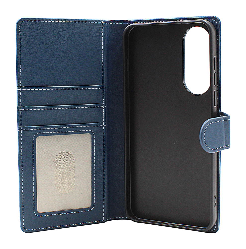 Mobilcoveret er laget av PU-skinn – et slitesterkt kunstskinn som blir mykere og mer behagelig med tiden, på samme måte som ekte skinn. Det lukkes med en magnetknapp som ikke påvirker kredittkort eller bankkort.
