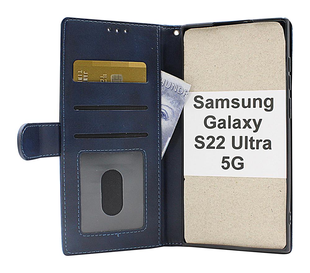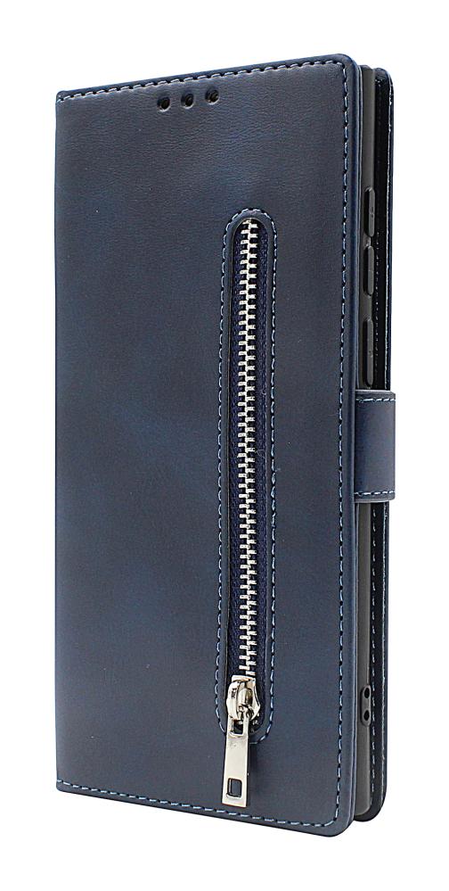 Zipper Standcase Wallet for Samsung Galaxy S22 Ultra 5G (SM-S908B/DS) med 3 kortlommer hvorav en er gjennomsiktig – perfekt til førerkort eller det betalingskortet du bruker mest.